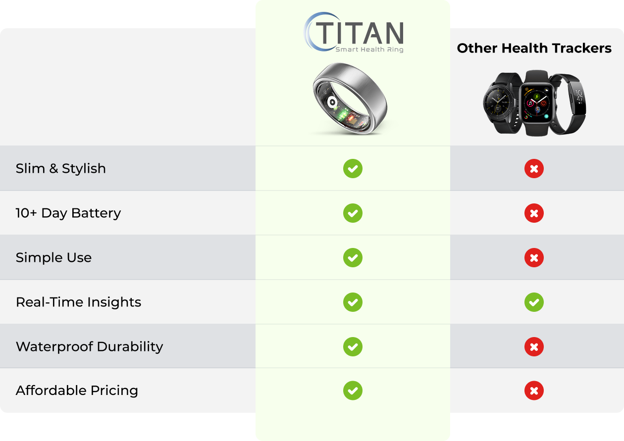 Titan Health Smart Ring is a sleek, durable wearable that monitors your vital health metrics 24/7.